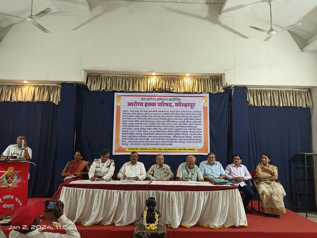 जन आरोग्य अभियानाच्यावतीने राज्यव्यापी आरोग्य हक्क मोहीम राबविण्यात येत आहे. त्याअंतर्गत मंगळवार, दि. 2 जानेवारी 2024 रोजी राजर्षी शाहू स्मारक येथे जिल्हा आरोग्य हक्क परिषद पार पडली. यावेळी सामाजिक कार्यकर्ते चंद्रकांत यादव, सुरेश शिपूरकर, शिवाजीराव परुळेकर, भरमा कांबळे, रवी देसाई, व्हाईट आर्मीचे अशोक रोकडे, कंत्राटी कर्मचारी संघटनेचे स्वप्नील गोसावी, दीपक देवलापुरकर, नेताजी पाटील, आशा संघटनेच्या उज्वला पाटील, उपस्थित होते. यावेळी पुढील कृती कार्यक्रम राबवण्यासाठी जन आरोग्य अभियानाची कोल्हापूर जिल्हा समिती तयार करण्याचा ठराव सर्वानुमते मंजूर करण्यात आला.